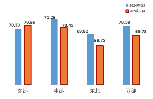 從四大區(qū)域來看,東部、中部、東北、西部地區(qū)分別為70.66、70.45、68.75、69.73,排名分別為東部第一,中部第二,西部第三,東北第四。與上一季度相比,東部地區(qū)改革熱度指數(shù)提升。