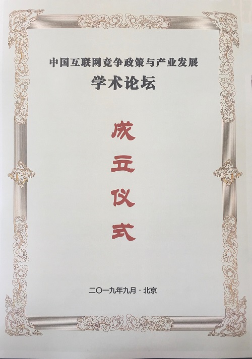 2019年9月28日,中國互聯(lián)網(wǎng)競爭政策與產(chǎn)業(yè)發(fā)展學(xué)術(shù)論壇(以下簡稱“論壇”)宣布成立,并在中國人民大學(xué)舉辦了第一次學(xué)術(shù)論壇。
